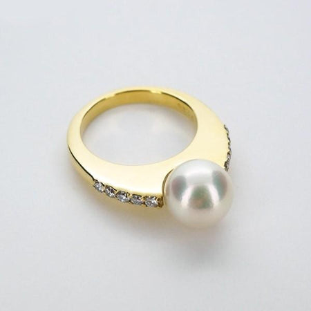 K18 イエローゴールド パール ダイヤモンド リング 日本製