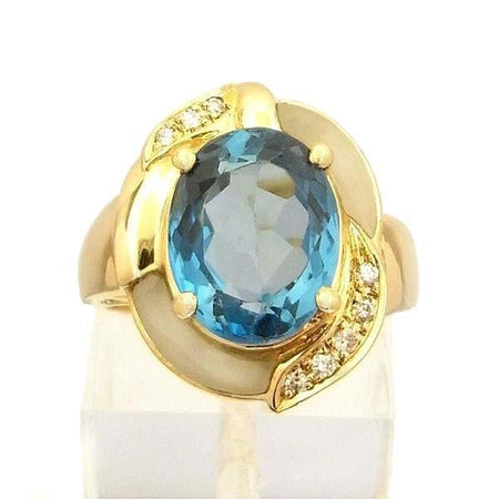K18 イエローゴールド ブルートパーズ ダイヤモンド リング 日本製